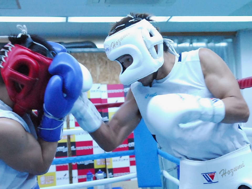 3ラウンドのシャドーは、自分の動きを客観的に見極めながら確かめるように動く。そして、いよいよ試合前のラスト・スパーリング―。中辻マネージャーを相手に、この1ヶ月のトレーニングの成果を余すところなく発揮し、当初の予定通り3ラウンドやりきった。終了と同時にジムメート、トレーニング陣、そして山下会長から大きな拍手が沸き起こった!