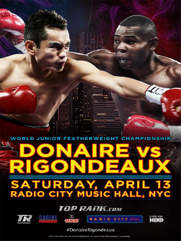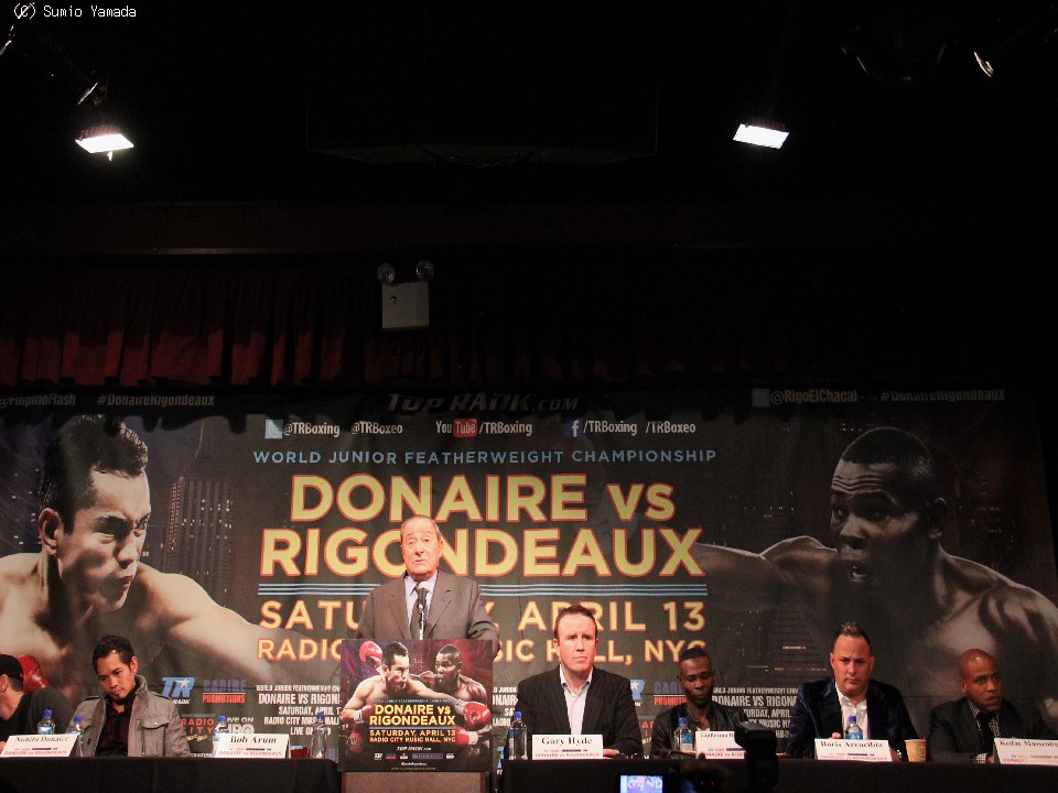 ドネアとリゴンドーの対戦は数週間前に内定はしていたものの、会場選びに難航し発表にいたらなかった。しかし、木曜日にニューヨークで発表会見を行うと両選手をプロモートするトップランク社が発表し、すべての契約が合意したかに思われていた。