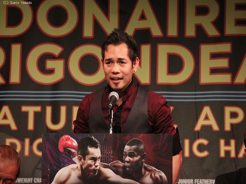リゴンドーは「これでようやく試合が正式決定した。あとはやるだけだ」と話すと、ドネアも「お互い試合に向けて真剣にトレーニンングするだろう。彼には(プロでの)経験が足らないと思っているが、4/13にどちらがスーパーバンタム級で一番強いのかがハッキリするよ」