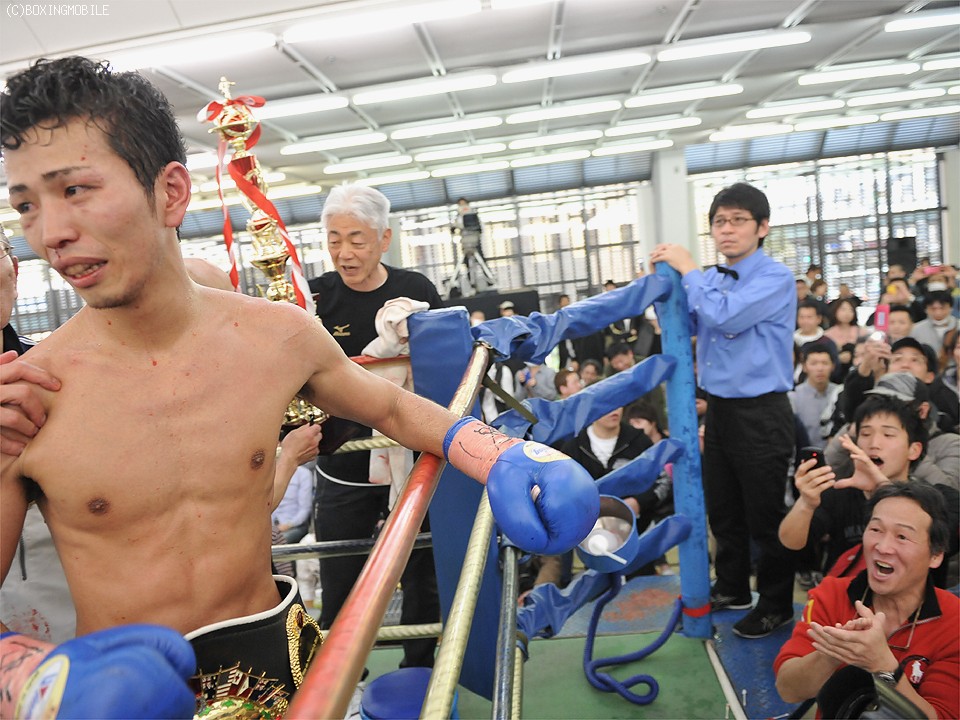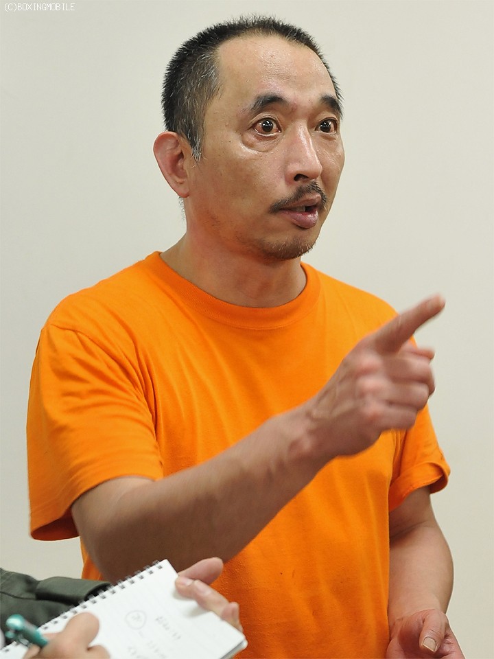 控室に戻った古口会長は「練習通りです。2Rのダウンはパンチが効いていたがダメージはないと思っていたので、気を付けて行けと伝えていた」と試合を振り返り、今後に関しては「ゆっくり考える」と興奮冷め止まぬ様子で新チャンピオンを労った。