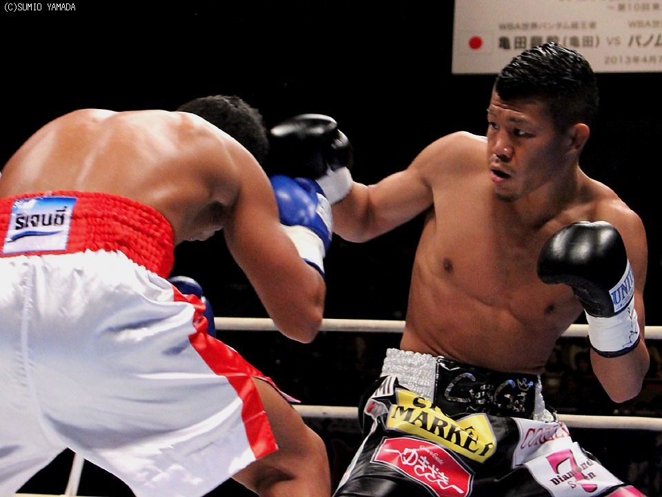 WBA世界バンタム級王者・亀田興毅(亀田)は、サウスポーの挑戦者パノムルンレック・カイヤンハーダオジム(タイ)と激突した!!