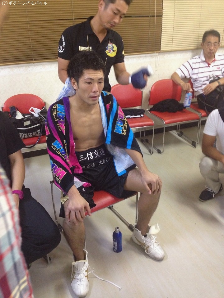 石原トレーナー (村田選手の)ワンツーをもらわないようにサイドステップでかわしていこうと考えていたが、ノーモーションのワンツーを最初にもらってしまい、相手にペースを握られた。