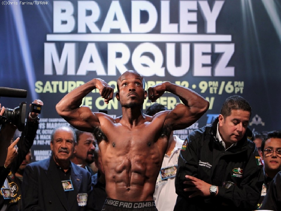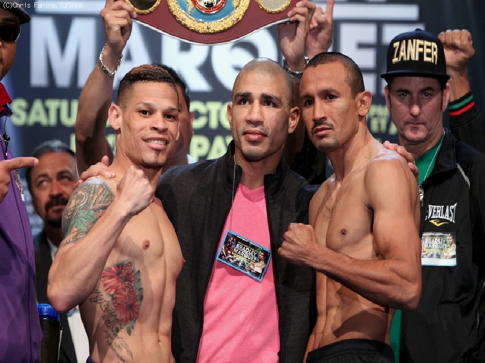 WBO世界ウェルター級タイトルマッチ、王者ティモシー・ブラッドリー(30=米)対挑戦者でWBO世界スーパーライト級王者ファン・マヌエル・マルケス(40=メキシコ)の12回戦は12日(日本時間13日)、米国ネバダ州ラスベガスのトーマス&マックセンターで行われる。11日には両者が前日計量に臨んだ。