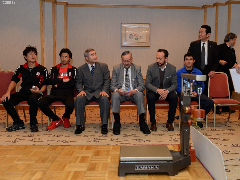 明日10日(日)、東京・両国国技館で開催される"TUCH!WOWOW2013"WBC世界バンタム級タイトルマッチの前日計量が都内のホテルで行われた。報道陣の前では常に微笑みを絶やさない挑戦者のアルベルト・ゲバラ(23=メキシコ、最新ランキングは11位)に対し、王者の山中慎介(31=帝拳)は既に実戦モードに入ったかのような険しい顔つきで計量に臨んだ。