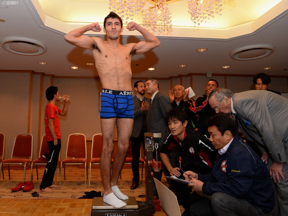 計量後、水と持参したスープで水分を補給した山中が取材に応じ、体格が大きくなったことで、以前より1kgほど落とす幅が増えたことを明かした。ゲバラについては「今朝、改めてゲバラの試合映像を見たがやっぱり怖さはない。自分の方が強いが、あの優しい顔には騙されないようにしたい」と僅かに警戒心も示したが、作戦について聞かれると「打ち合ってくれれば嬉しいが、向かい合ってから上を攻めるか下を攻めるか決める。強烈な左ストレートを見せます」と、自信たっぷりに答えた。