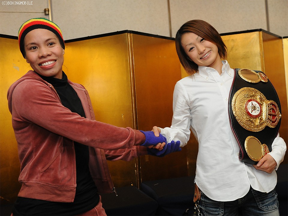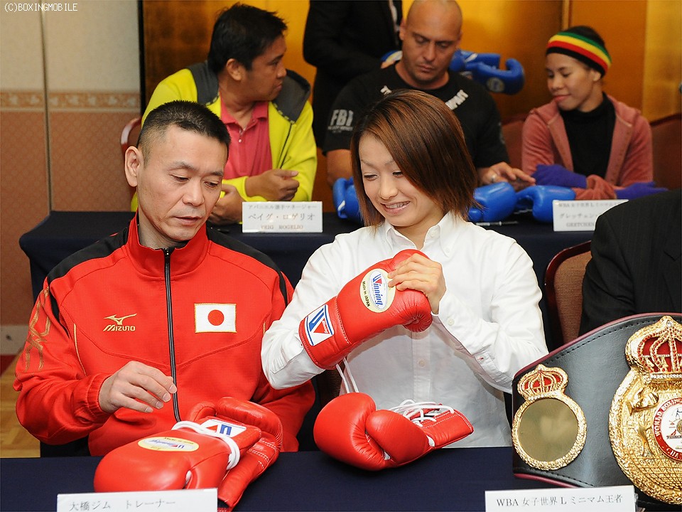 明日28日に東京・後楽園ホールで開催されるWBA女子世界ライトミニマム級タイトルマッチの調印式と前日計量が27日、都内で行われた。3度目の防衛戦に臨む王者の宮尾綾香(30=大橋)は、指名挑戦者の1位、グレッチェン・アバニエル(28=比)とプロでは初の外国人選手を迎える。