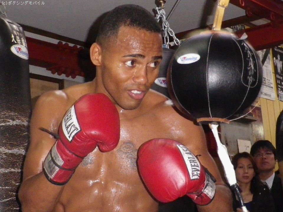 練習を開始したソリスは練習場を提供したアポロジムのはからいでメキシコ音楽をききながら準備運動を始めると、ロープ飛び、シャドー、ミット打ち、パンチングボール打ちを笑顔をみせながら調整をすすめた。特筆すべきはパンチングボール打ちだ。渾身のパンチをボールにあて4R中2度ほど芯を外しただけだった。パンチの正確さは王者の実力を計るには余りあるものであった。