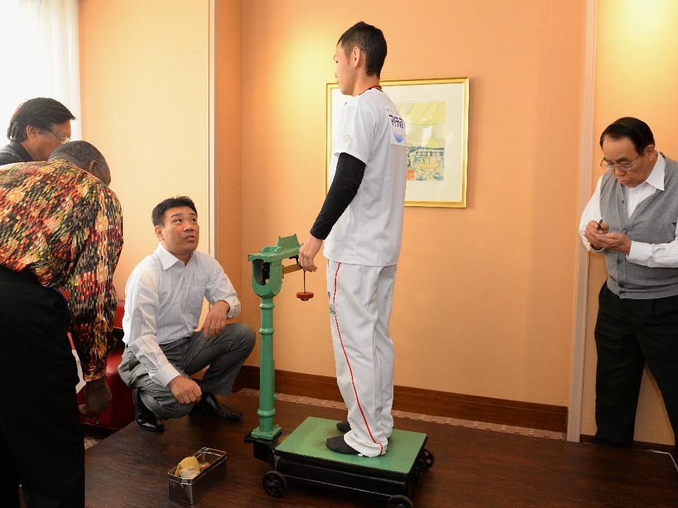IBF世界ミニマム級タイトルマッチ臨む王者・高山勝成も52.5kg(洋服着用400gマイナスし実質4.5kg増量リミット)で計量をパス。「今から試合時間までチームのみんなと静かに過ごします。ここ4年はずっと当日計量を経験しているので全く問題ありませんね。まだ戦闘モードにはなっていないけど、徐々にあげていきます」とIBF王者らしく慣れた様子で会見を終えた。