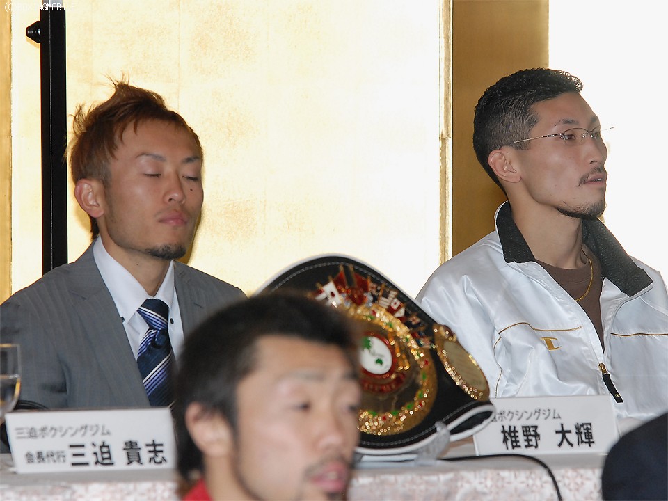 4日、都内ホテルで行われた「ダイヤモンドグローブSP」調印式・記者会見。大勢の報道陣に注目される中、東洋太平洋バンタム級タイトルマッチで激突する、椎野大輝(27=三迫)と岩佐亮祐(23=セレス)が意気込みを語った。