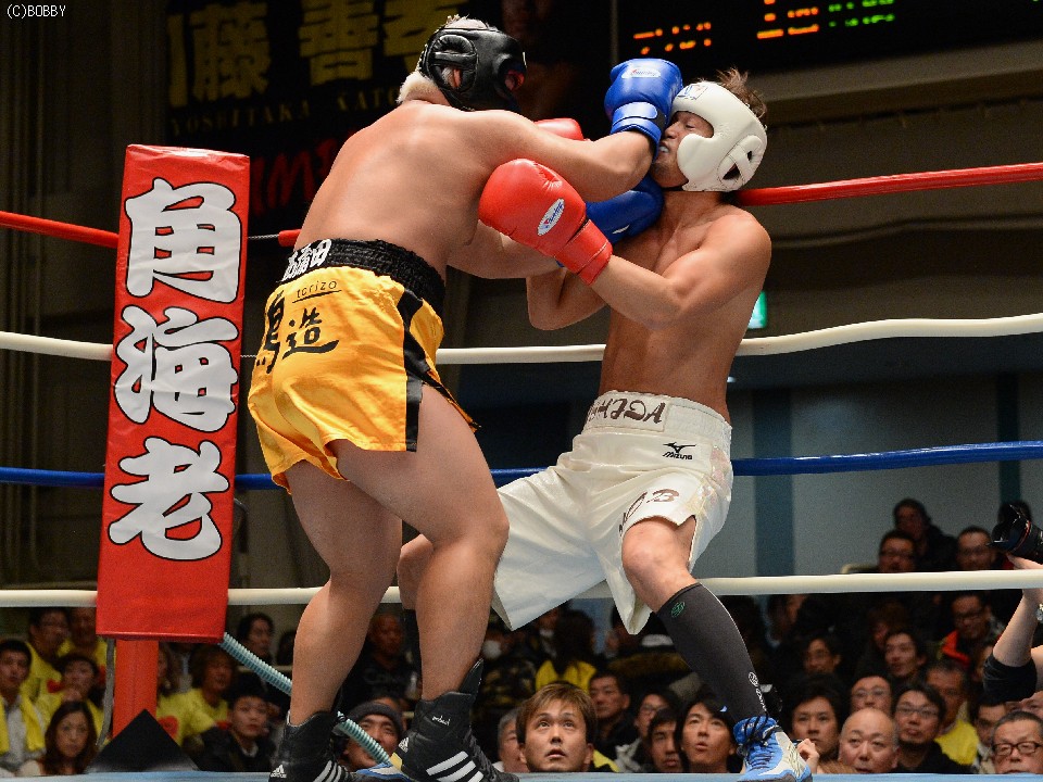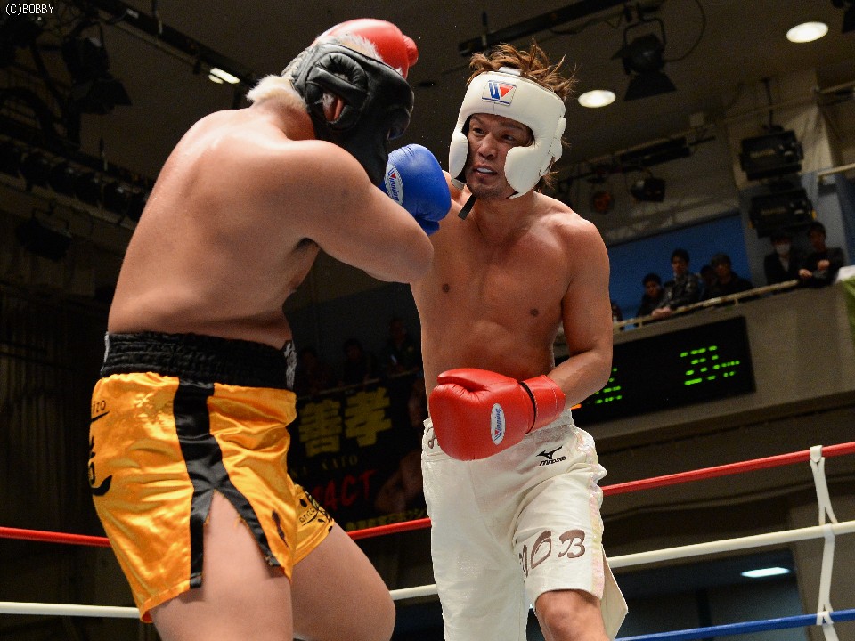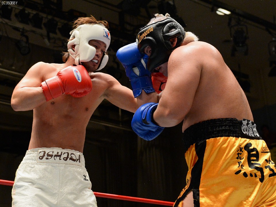 石田がこれを聞いたのは1週間前だったという。そのときの体重は85キロ。それから一日に5食の生活を続け、たんぱく質を摂取しながらウェート・トレーニングもこなして増量に努めた。その結果、着衣のまま91.6キロで計量をパス。それでもヘビー級として7戦(4勝3敗)のキャリアを持つ大和(114.5キロ)との体重差は約23キロもあった。