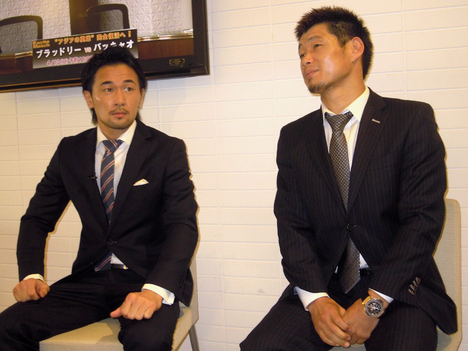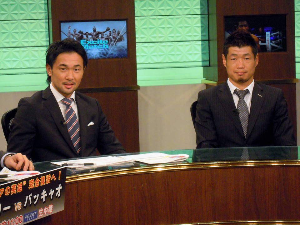 4月23日に大阪城ホールで6度目の防衛戦に臨むWBC世界バンタム級王者、山中慎介(31=帝拳)と、同じリングで3階級制覇に挑む元WBCバンタム級、フェザー級王者、長谷川穂積(33=真正)がひと足早く競演――ふたりは9日、WOWOWメンバーズ・オンデマンドで生配信されたスーパーウェルター級の元王者対決、サウル・アルバレス(23=メキシコ)対アルフレド・アングロ(31=メキシコ)戦や、ホルヘ・リナレス(28=帝拳)対荒川仁人(32=八王子中屋)のWBC世界ライト級挑戦者決定戦などの解説を務めた。
