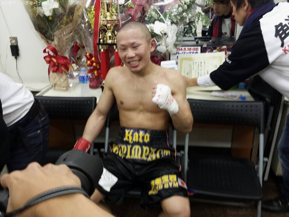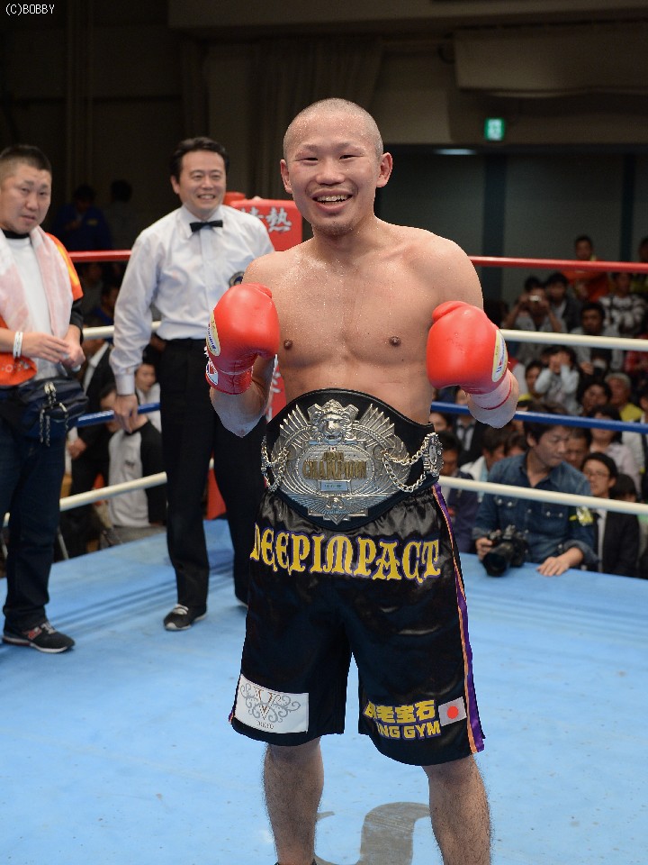「久々のKOです(笑)。今回は倒すというのがテーマだった。鈴木選手も、前に出てきてくれて噛み合ったと思う。前回は右だったが、今回は左のパンチで少し効いてしまいました。前戦(中谷正義戦)の敗因は前に出るという自分の良さが出せなかったこと。今回は自分の力を出しきれた。ポイントを取りにくるか、足を使ってくるかと思っていたが、リングに上がった鈴木選手を見て、これは来るなと思った」と試合を振り返ると「再起戦がタイトル戦という気持ちの作り方が難しい試合だったが、4月中にタイトル戦を組まないければいけなかったのが、良かったのかもしれない。中谷選手とのリベンジもしたいし、鈴木選手との三度目の対決もしてみたいですね」と今後の抱負を語った。