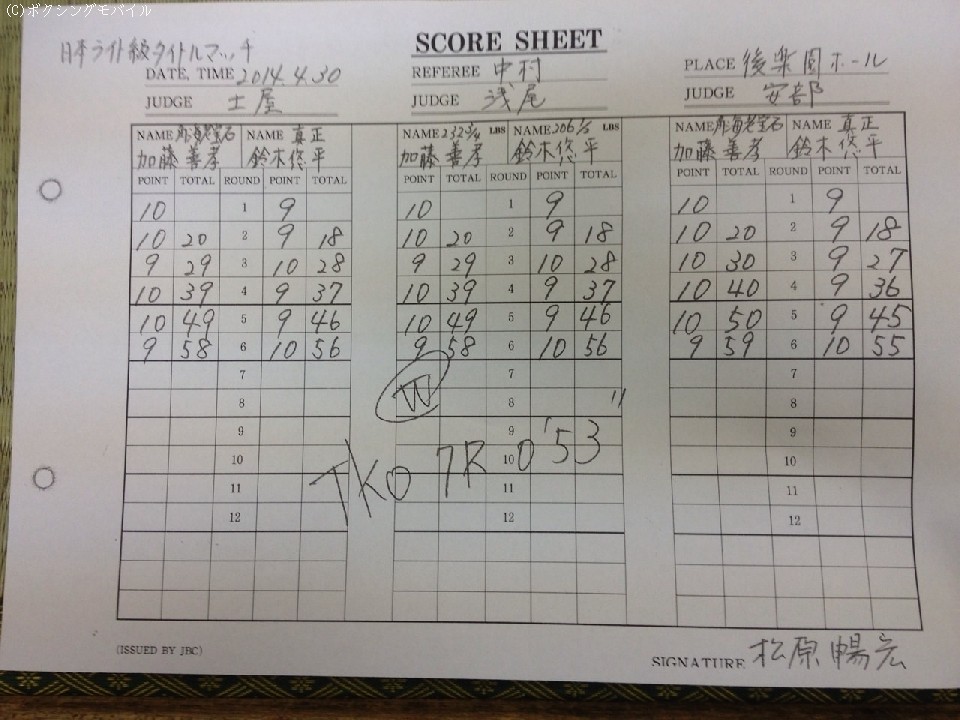 会場で観戦した荒川仁人(八王子中屋)は「鈴木選手はもっと足を使えば良かった。チャンピオンは追い足を使わず自分のフィールドで楽に戦った。6ラウンドに鈴木選手がいいパンチを当てたので、加藤選手はプレッシャーをかけてきたが、鈴木選手はガードを下げて打ち合いに行ってしまった」と日本タイトル戦の印象を語った。