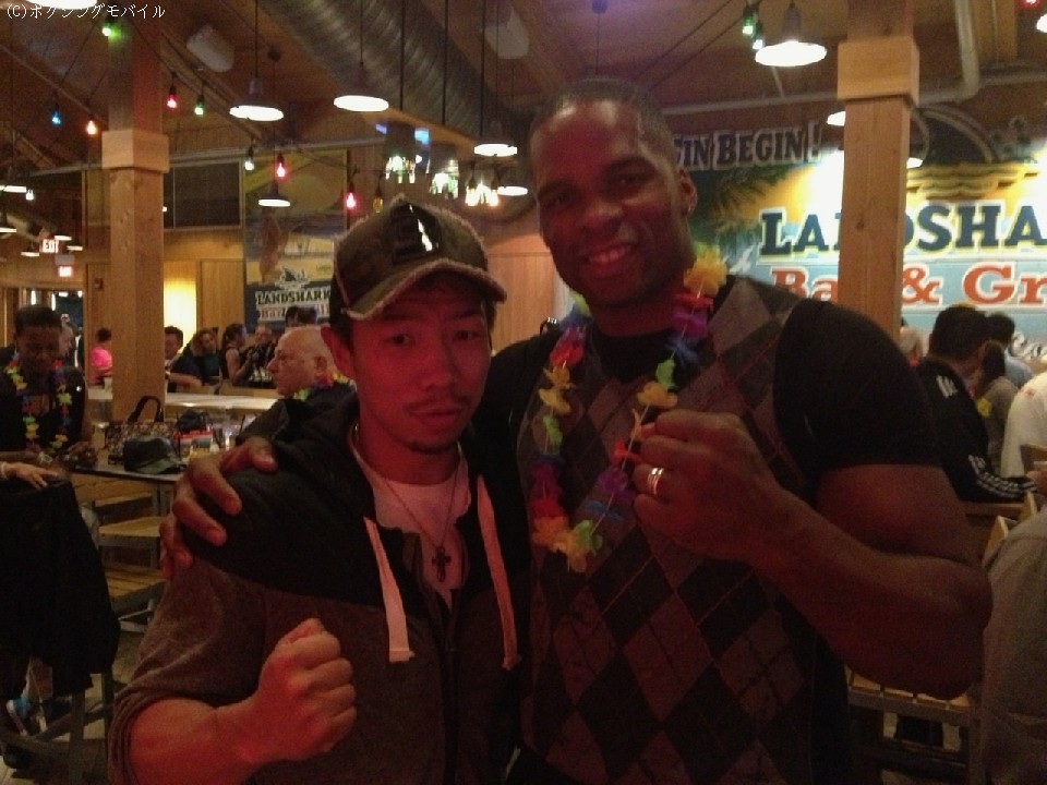 「神戸で試合をしたよ」と気さくに声をかけてきたのは元IBFクルーザー級チャンピオン、イマム・メイフィールド(米国)。2002年9月のオケロ・ピーター(緑ジム=当時)戦で来日したことを懐かしそうに話してくれた。