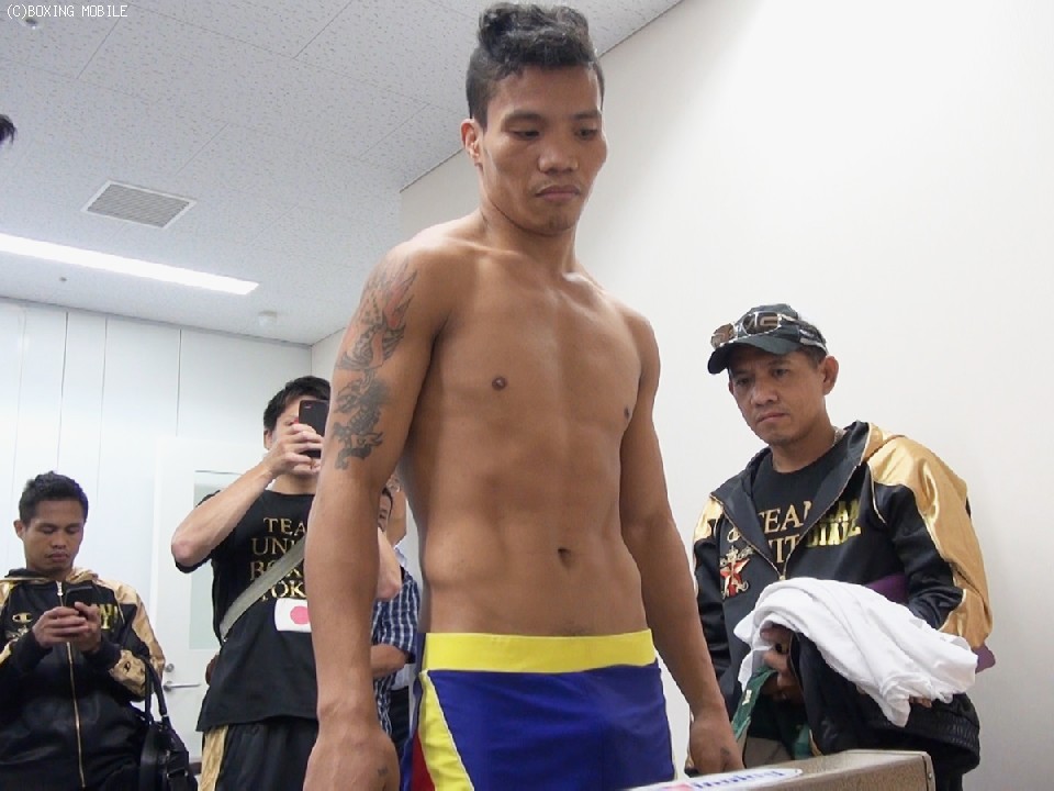 計量は、江藤光喜(白井・具志堅)がフライ級リミットの50.8kg、アーデン・ディアレ(比)が100gの50.7kgでパスし共に調子の良さを伺わせた。