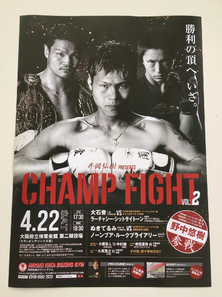 注目:08年にデビューした大石は、昨年11月のタイトル初挑戦で細川貴之(六島)を11回負傷判定で破り王座を獲得。19戦目にして悲願のベルトを巻いた。スタイルは好戦的な右ボクサーファイター。それだけに被弾も多いが、今回は10戦7勝(5KO)3敗とこちらもKO率の高いタイ人選手と派手な打ち合いを見せてくれそうだ。