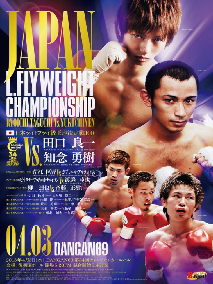 注目:空位となった王座を掛け、世界ランカーである田口と知念が拳を交える。両者はライトフライ級屈指のハードヒッターであり、決定戦のリングも自慢の拳でKO決着を狙う。新たな王者として君臨し、"怪物"を迎え撃つのは…。