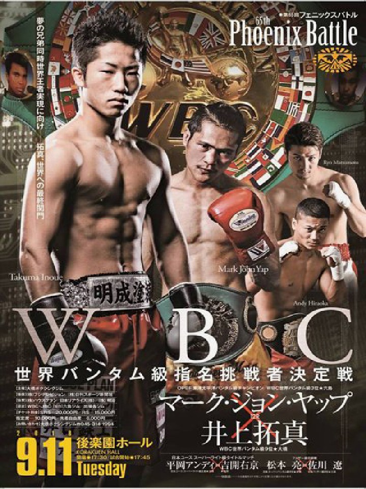 注目:国内バンタム級最強決定戦ともいえる好カード。井上は、2016年12月に世界挑戦が決まったが、右拳の負傷のため中止。復帰後は前日本スーパーフライ級王者の久高寛之(仲里)、元日本バンタム級王者の益田健太郎(新日本木村→引退)に勝利し実力を示してきた。ここ最近は持ち前のスピードに加え、コンビネーションも多彩になった。真っ向から打ち合いに臨む気持ちの強さも持ち合わせている。拳を交えるヤップは、現在10連勝中。国内のバンタム級の猛者を相手に勝ち上がってきた。中間距離から飛んでくる強烈なカウンター、勝負どころを逃さない決定力が魅力だ。昨年12月の益田戦では初回に3度目のダウンを喫したが、驚異の回復力を見せると2度のダウンを奪い返し逆転勝ちした。試合は距離が鍵になる。どちらが得意な距離に持ち込めるか?終盤は激しい打撃戦が予想される。世界挑戦者決定戦に相応しい試合になるだろう。