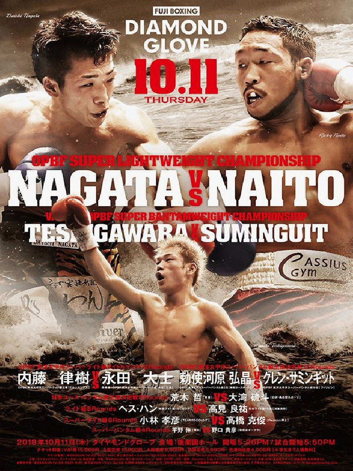 注目:OPBF東洋太平洋王者の内藤の2度目の防衛戦。前戦はスピードで上回り鋭いジャブで主導権をキープし続けたが、11回にダウンを喫すると12回も右フックを浴びてダウン。辛うじて逃げ切りに成功した。苦しみながらベルトを守った内藤としては、5戦ぶりの日本人対決で存在感をアピールしたい。一方、タイトル初挑戦の永田はアマ62戦41勝(11KO)21敗でB級デビュー。順調に白星を重ねたが、昨年4月にディスティノ・ジャパン(ピューマ渡久地)に7回TKO負けで初黒星。しかし、そこから3連勝でベルトに王手をかけた。馬力のある永田は積極的な攻撃を仕掛けるのは必須だが、まともにぶつかっては内藤の思うつぼ。どのような仕掛けを持ってくるのか?前半4ラウンドの攻防が鍵を握ると見る。