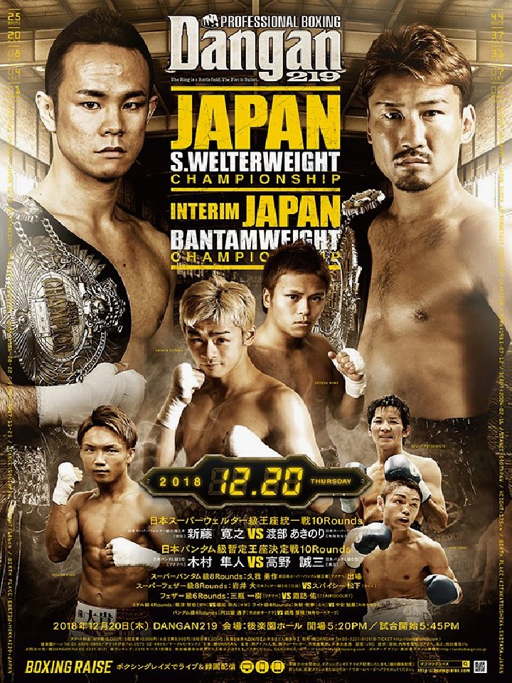注目:新王者の齊藤裕太(花形)が病気のため設けられた暫定王座。抜群のスピードを持つ木村が3度目の正直で悲願の日本王座を獲得するのか、それとも19勝のうち12KOと強打を誇る高野が、日本タイトル初挑戦で戴冠を果たすのか。東西の意地がぶつかり合う!