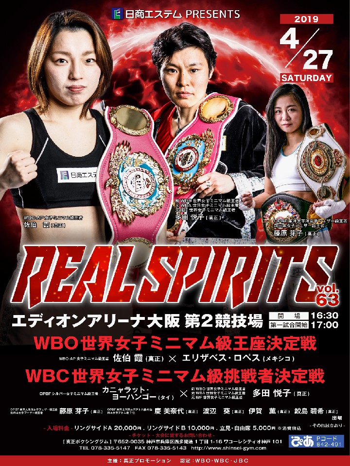 注目:昨年12月に世界王座を奪還した多田が新たなベルトを狙い挑戦者決定戦に出場する。相手のカニャラットは7戦5勝(3KO)2敗のオーソドックススタイルでOPBFミニマム級シルバー王者。発表会見で多田は、「今度の相手は力の差があると思うのでしっかり勝ちたい」と必勝宣言した。この試合に勝ち次のWBC王座戦でベルトを獲得すれば女子初の4団体制覇となる。キャリア、テクニックで大きく上回る多田のKO劇に期待したい。