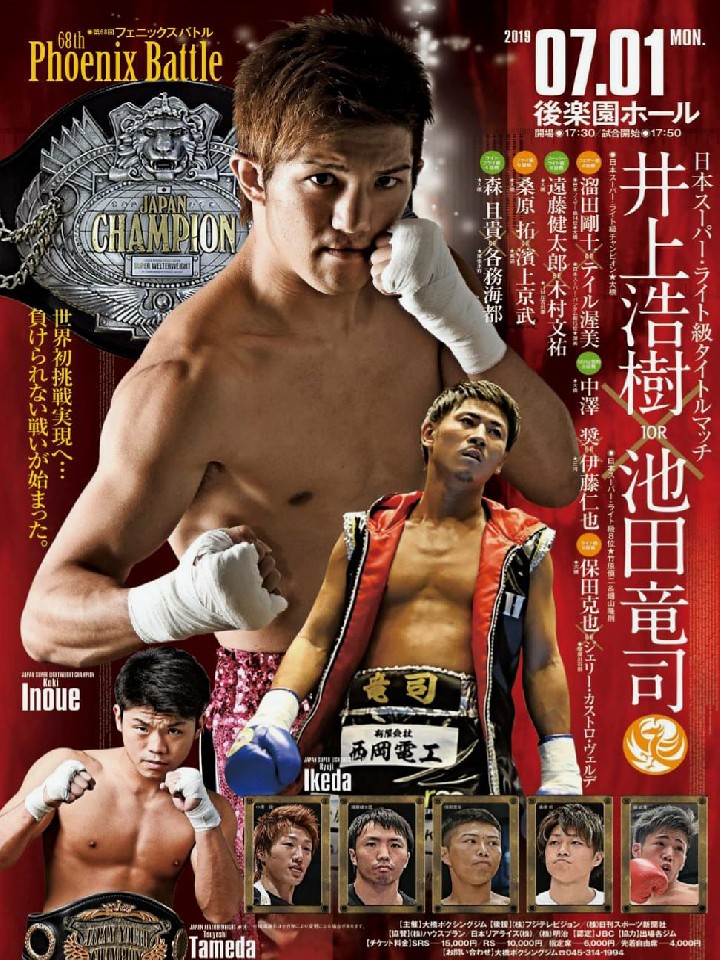 注目:4月に戴冠した井上の初防衛戦。細川バレンタイン(角海老宝石)との試合では、持ち前のスピードとテクニックでポイントを稼ぎ勝利を収めたが、試合後には「もっと面白い試合で盛り上げたかった」と笑顔は少なかった。13年全日本ライト級新人王の池田はこれがタイトル初挑戦。一瞬の踏み込みから打ち込まれる左フック、右ストレートが武器で14勝中9KOをマークする。13戦無敗の井上からベルトを奪うべく気合いが入る。井上は鬼門の初防衛戦で存在感をアピールしたいところだ。