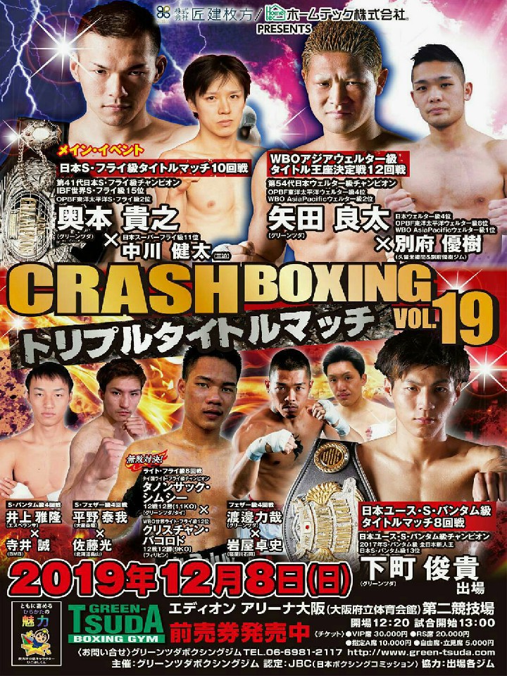 注目:関西と九州の強打者がベルトと生き残りをかけて激突! 前日本ウェルター級王者の矢田は馬力のある攻撃で打ち合いに巻き込みこれまで何人もの相手をキャンバスに沈めてきた。4月に日本王座を奪われたが、8月に再起に成功し再びベルトを狙う。一方、"九州のタイソン"別府は、昨年10月の日本タイトル挑戦者決定戦で初黒星を喫したが、今年2連勝でタイトル初挑戦を迎えた。鋭い踏み込みから左右ともに破壊力のあるパンチでなぎ倒してきており敵地でのリングに闘志を燃やす。序盤から激しい打撃戦は必至!我慢比べを制して王座に輝くのは!?