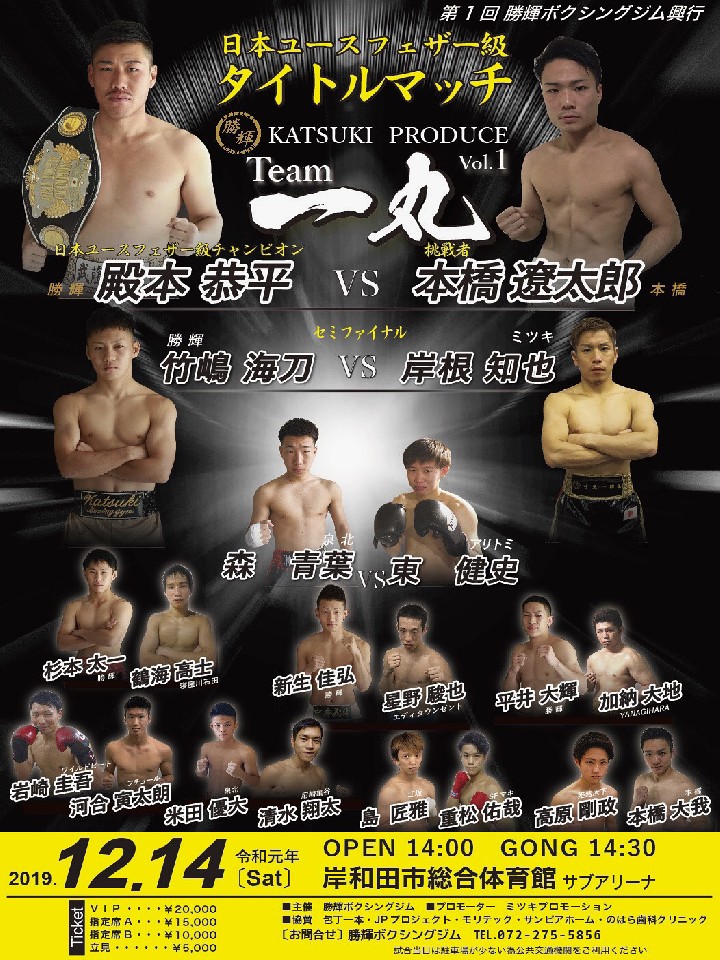 注目:5月に接戦を制してユース王座を獲得した殿本が、自主興行のメインイベントで初防衛戦を迎える。殿本は体幹の強さを活かした回転力のある連打と左ボディが魅力の右ボクサーファイター。挑戦者の本橋はガードを固め前進するブルファイター。本橋ジム初のタイトル挑戦に闘志を燃やす。スタイル的に噛み合い好勝負は必至。師走の岸和田のリングが熱い!