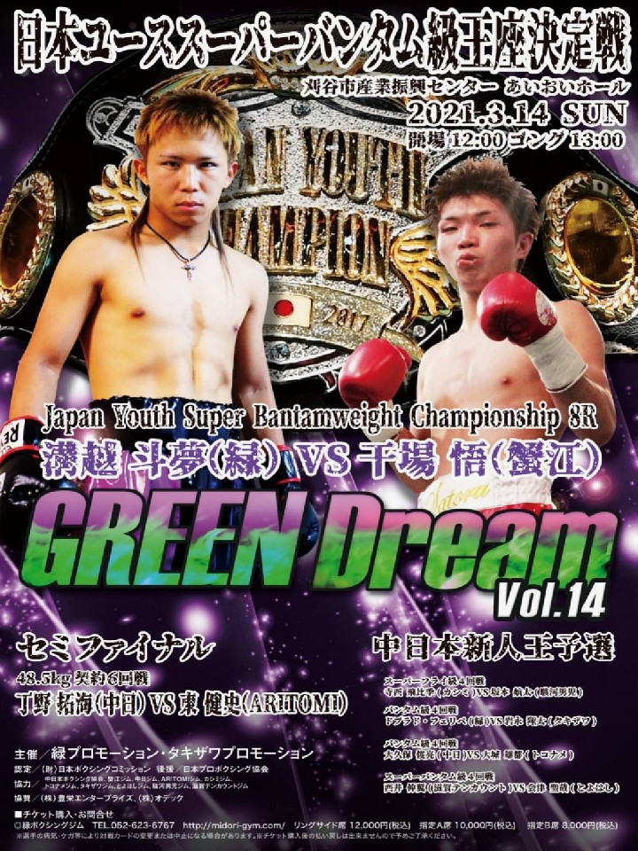 両者は2019年7月に対戦し、溝越が2回TKO勝ちしている。溝越はスピードを活かしたカウンターパンチャーでチャンスには連打で仕留める決定力もある。干場は接近戦でのショート連打が得意な右ファイターでスタミナも豊富だ。距離を詰めていく干場に対し、溝越が迎え撃つ展開となるだろう。
