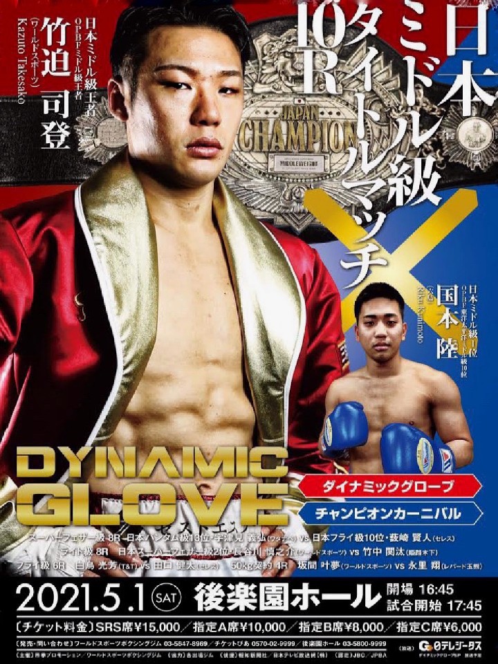 2020年1月にOPBF王座を吸収し2冠王者に就いた竹迫が日本王座4度目の防衛戦に臨む。王者の細川チャーリー忍(金子)に挑戦した竹迫は、序盤からペースを握りテクニックと豊富なスタミナで大差判定勝ち。ミドル級アジアナンバーワンの地位を確立させた。5戦目でタイトルに初挑戦する国本は、2019年4月に後楽園ホールでランキング奪取に成功した。記者会見で「胸を借りるつもりで頑張る」と必勝を誓った。両者とも強烈なパンチ力を持つだけに中盤以降でのKO決着が濃厚だ。両者とも久しぶりの試合となるが、ブランクがどのように影響してくるのか?