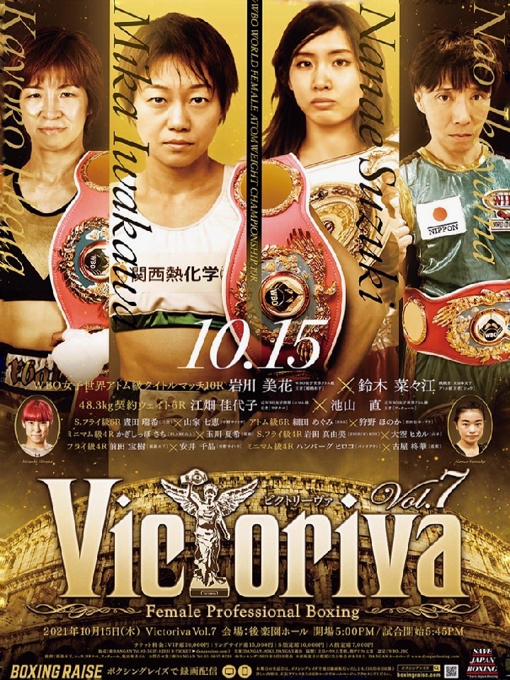 元WBO女子世界ミニマム級王者の江畑佳代子と元WBO世界アトム級王者の池山直の元世界女王対決。軽快なフットワークからジャブから右につなげる正統派スタイルの江畑に対し、回転力を活かした攻撃が持ち味の池山。打ち合いに持ち込みたい池山と中間距離でポイントをピックアップしていきたい江畑の構図が予想される。6ラウンドと短い攻防の中で、序盤でペースを握った方が大きく勝利に近づくのではないだろうか。