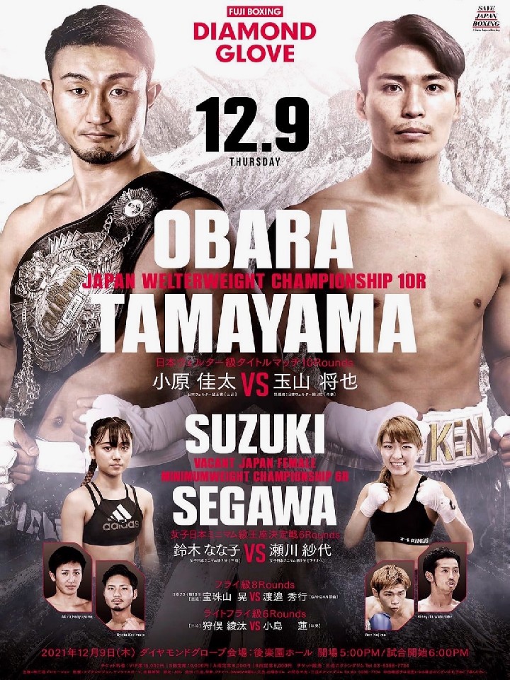 小原は、今年4月に坂井祥紀(横浜光)に判定勝ちしタイトル初防衛に成功。メキシコ逆輸入ボクサーの坂井との接戦を勝ち切った。ロングレンジから繰り出される強烈なパンチとアマ仕込みのテクニックで国内ウェルター級のトップを走っている。タイトル初挑戦の玉山は、全体の平均値が高い右ボクサーファイターでジワジワとランキングを上げてきた。崩しにくい小原に対し、どのような対策を練ってくるのか?