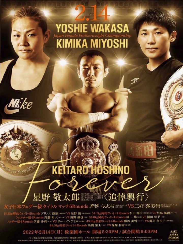 両者は2020年11月に対戦し若狭が判定勝ちでタイトル奪取に成功している。前回は、若狭が先制攻撃でペースを握り6ラウンドを突き抜けた印象だった。若狭は、プレスをかけながら左右フックで攻め込む右ファイターだ。節目の30戦目を迎える三好は、ジャブからワンツーに繋げる正統派スタイルだが、打撃戦にも強い。序盤から仕掛けてくることが予想される若狭の勢いを止めて着実にポイントを取っていきたい。