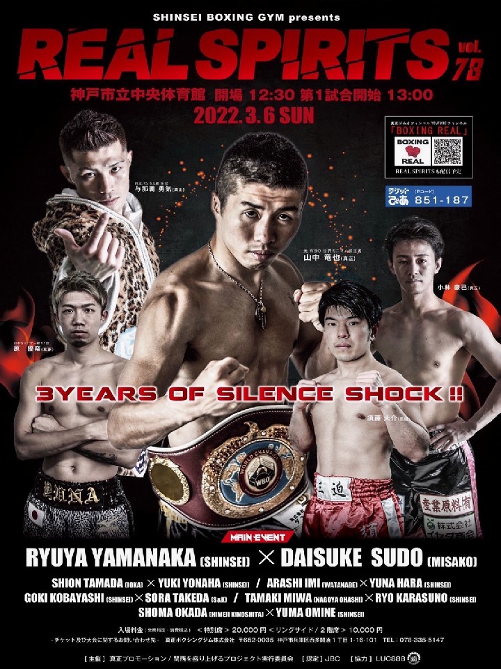 元世界王者の山中が約3年8ヶ月ぶりに復活する。ライトフライ級に上げて世界2階級制覇を目指す。ブランクを感じさせない動きに期待。連敗脱出を目指す須藤は、豊富な手数で攻め立てる右ファイター。知名度のある山中を撃破し名前を売りたい。