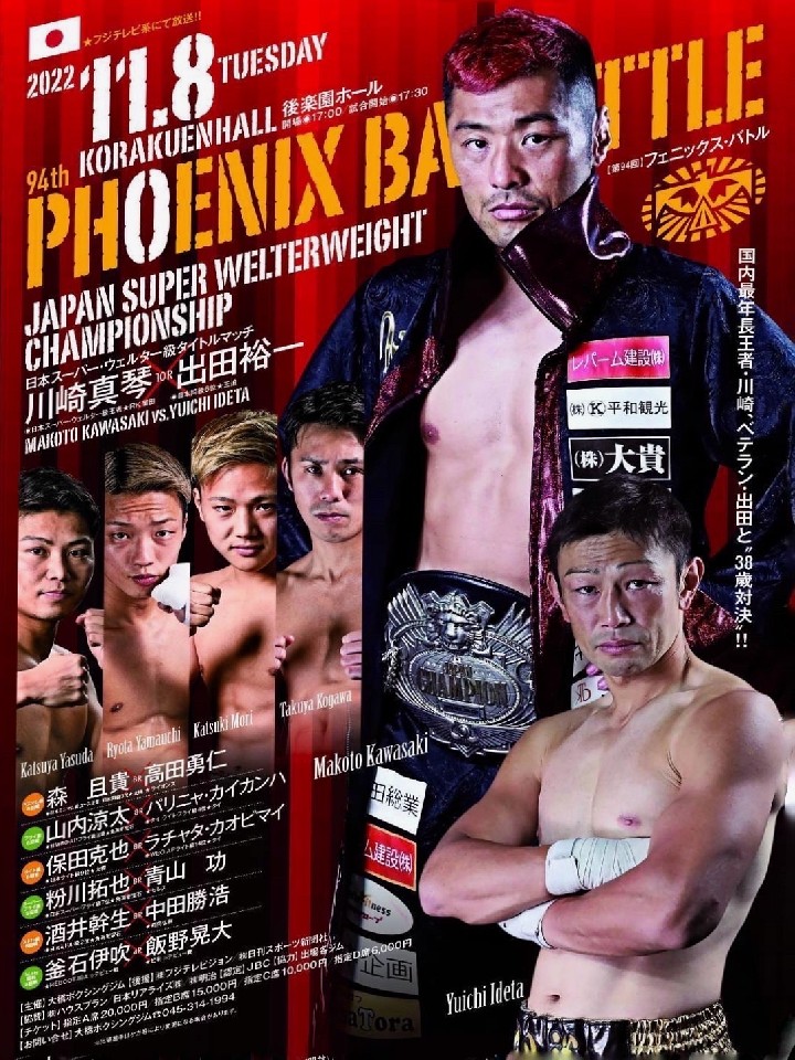 2度目の防衛戦に臨む川崎は、前戦引き分けでベルトを死守しているだけにここは、スカッと勝ちたいところ。左右フックと上下の打ち分けで早めにペース握りたい。挑戦者の出田は、キャリア18年目でついにタイトルマッチのチャンスを掴んだ。グイグイと前に出てしつこい連打でチャンピオンの体力を奪いたい。