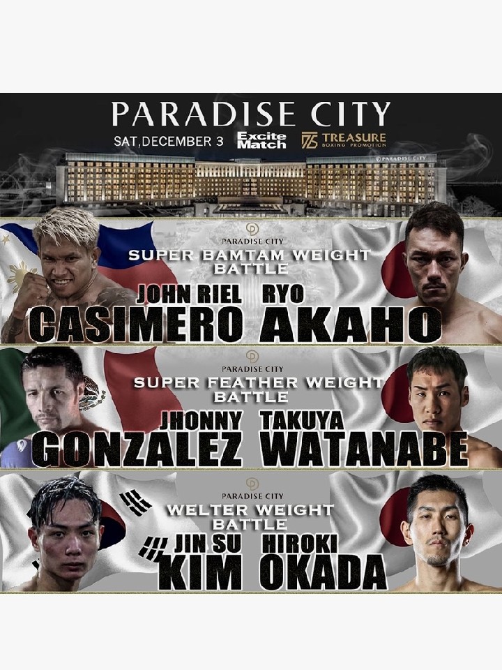 世界ランカー赤穂が勝負の一戦を迎える。ジャブから左右フック、アッパーは驚異で野性味あふれるファイトで世界戦以外は負けなし。パンチへの見切りがよくワイルドな攻撃の中に冷静さを兼ね備えている。前WBO世界バンタム級王者のカシメロは、指名試合を規定違反したため王座を剥奪された。左右ともに抜群の破壊力を持ち、思い切りの良さが魅力の右ファイターだ。間違いなく噛み合う試合でKO決着は間違いなしだ!