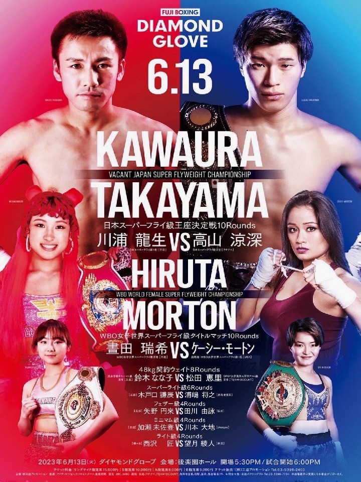 WBO女子世界Sフライ級王者の晝田の初防衛戦。昨年12月の王座決定戦では、谷山佳菜子(ワタナベ)にスピードとテクニックで翻弄。カウンターでダウンを奪う完勝で戴冠した。女子年間最優秀選手賞を受賞し、日本女子ボクシング界のトップを走っている。挑戦者のモートンは、2019年6月に吉田実代との王座決定戦で判定負けし、その後は3勝(2KO)1敗で再びタイトルマッチの舞台に立つ。ジリジリと距離を詰めながら豊富な手数で攻め立てる好戦的なタイプだ。進化を遂げた晝田のV1達成に期待。