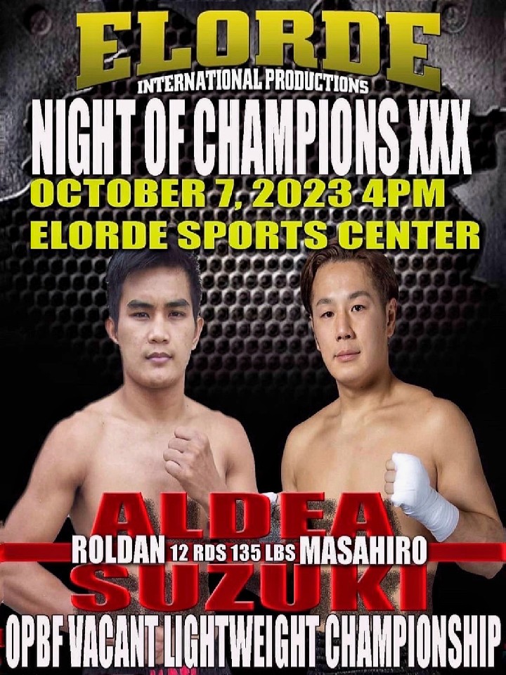 元日本王者の鈴木が敵地でOPBF東洋太平洋王座に挑む。昨年2月の日本王座決定戦で敗れて以降、2試合連続KO勝ちで浮上。攻守のバランスの良さと決定力の高い左フックが魅力だ。フィリピン王者のアルデアは、2019年2月に元世界王者の尾川堅一(帝拳)に判定負け。長いリーチを活かしながら独特のリズムで打ち込むサウスポーだ。アウェー戦に臨む鈴木の戴冠に期待。