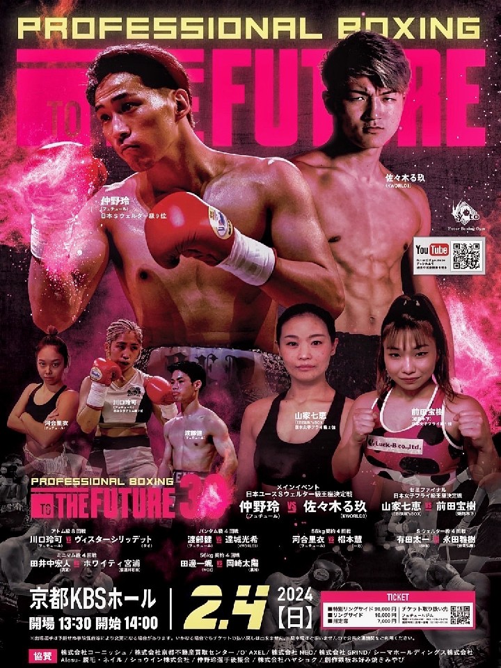 初代日本ユースSウェルター級王座を仲野と佐々木が争う。サウスポー仲野は上下のコンビネーションを得意とする技巧派だが、今年10月の試合ではパワフルな攻撃で激戦を制した。この試合が評価されて日本Sウェルター級9位にランクされた。佐々木は左ボディ、左ショートフックを力強い攻撃が魅力。Sウェルター級に上げてから2連続KO勝ちだ。序盤からお互いの気持ちがぶつかり合う打撃戦が繰り広げられそうだ。