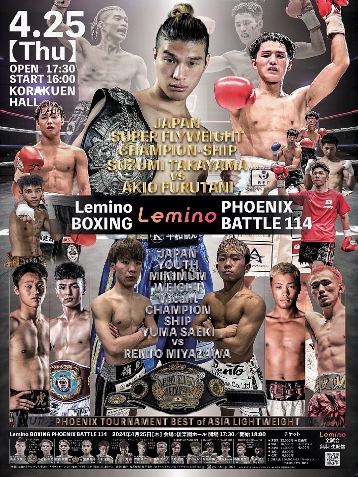 ここまで3戦全勝(3KO)の佐伯は、ジャブを軸に多彩なコンビネーションで攻め立てるサウスポー。後楽園ホール初登場の宮澤は、緩急をつけた攻めからチャンスに連打で仕留める好戦的なタイプ。プロでのキャリアをじっくりと重ねている。日本ユース王座を手にするのは?