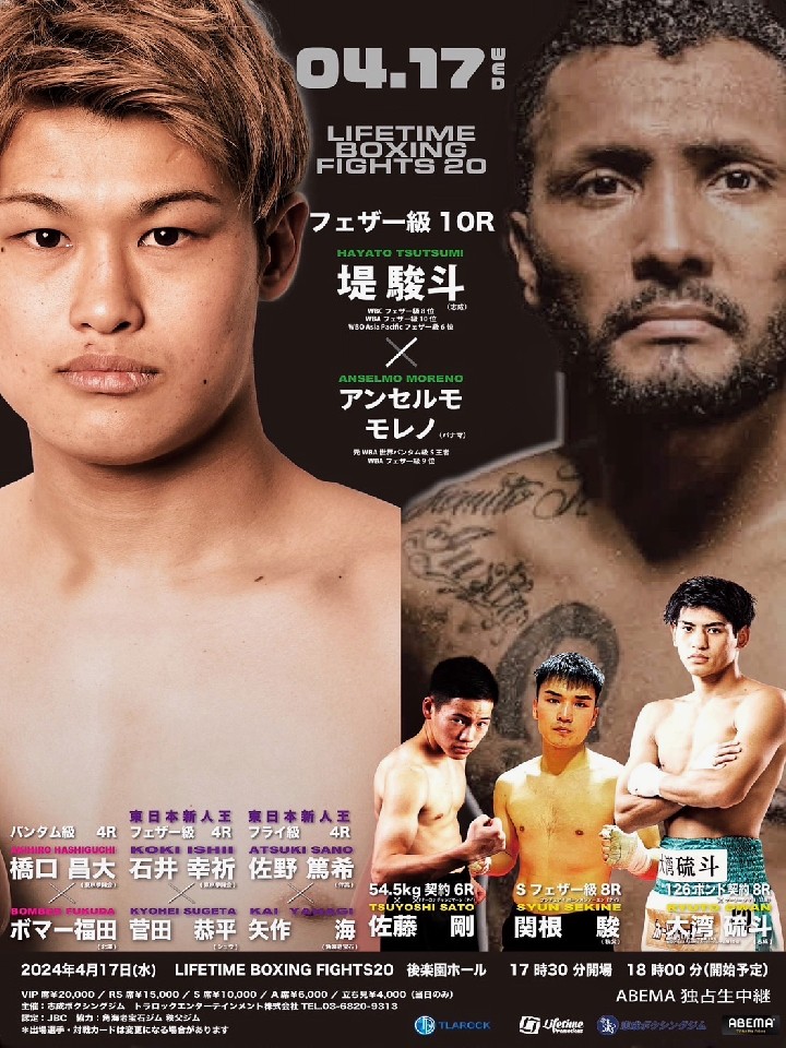世界ランカーの堤は、大晦日に世界15位のルイス・モンシオン・ベンチャーラ(ドミニカ共和国)に3回TKO勝ち。緩急をつけた多彩なコンビネーションで圧倒した。元WBA世界バンタム級王者のモレノは、かつて山中慎介と2度にわたり激闘を繰り広げたことで日本でもおなじみ。現在も世界ランクを保持してリングに上がり続けている。上体を柔らかく動かしながら、テンポよく左を突いてくる技巧派サウスポーだ。堤の真価が問われる一戦だ。