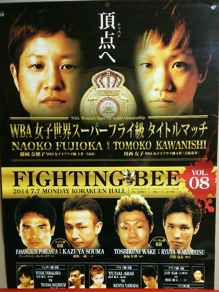 注目:藤岡は昨年11月、3階級上げて前王者の山口直子(白井・具志堅スポーツ)に挑み、パワーで勝る山口をスピードを生かしたテクニックで判定勝ちし2階級制覇を果たした。日本女子の新たなエースとして存在感を示した藤岡は今回が初防衛戦。戦績は無敗の11勝(6KO)。対する川西は昨年4月に山口の同門、前王者のつのだのりこに挑み、171cmと長身を生かした抜群の試合運びで王者を圧倒。4回TKOで破りタイトルを奪取し、女子界期待のホープとして高い評価を得た。戦績は10戦9勝(4KO)1敗。一回り近い年齢差の対決となるが、どちらも女子の枠を超えるセンスの持ち主。日本女子の新たなページが開くことは間違いない。