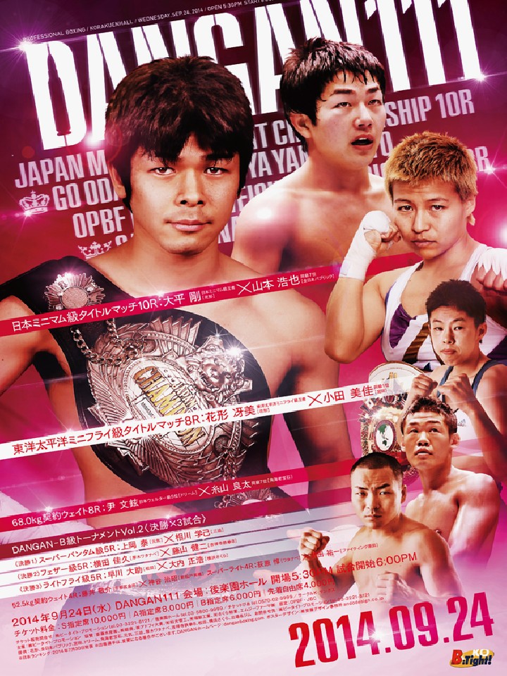 注目:今年6月の初防衛戦を苦戦しながらもクリアした大平のV2戦。現在IBFでは6位にランクされ、世界を射程圏に捉える。対する山本は12年度の全日本ミニマム級新人王で、昨年8月に本来階級上の山口隼人(TEAM10COUNT)に初黒星を喫したが、ミニマム級のNO.1ホープであることには間違いない。気持ちの強い選手だけに、挑戦者らしいアグレッシブなファイトに期待したい。