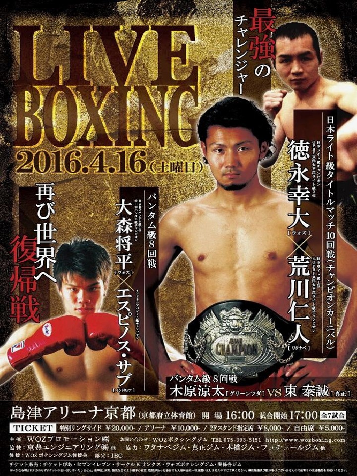 注目:王者として充実な1年を過ごした徳永が最強の挑戦者を迎える一戦。徳永はこれまで2度の防衛戦を苦戦しながらも挑戦を退け、後半の勝負強さを発揮している。一方、これが4年ぶりのチャンピオンカーニバル出場の荒川は加藤善孝(角海老宝石)、内藤律樹(E&Jカシアス)に連敗し、後がない状況から最強後楽園にエントリーし再浮上した。両者ともスロースターターの傾向があるタイプだけに早めにペースを握りたい。徳永のサウスポーに対する試合運びにも注目したい。ベテラン荒川は再びベルトを取り戻して”まだ終わっていない”ことを証明したい。カーニバル屈指の好カード。